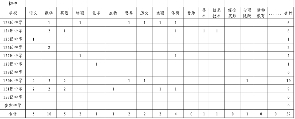 2024年第七師教育系統(tǒng)招聘義務段特崗教師50名。招聘學校及科目如下:
