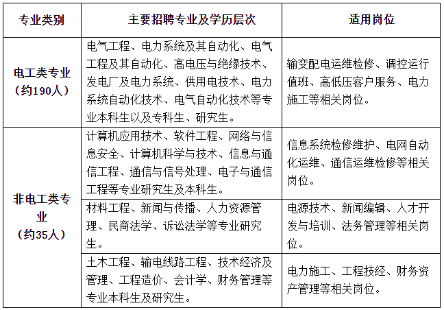 招聘專業(yè)指主修專業(yè)(不包含輔修專業(yè))。招聘專業(yè)主要為電工類專業(yè),少量招聘非電工類專業(yè)。根據(jù)2024年第一批招聘畢業(yè)生流失情況,進(jìn)行少量補(bǔ)招。最終招聘數(shù)量將根據(jù)上級單位核定情況相應(yīng)調(diào)整,主要招聘計(jì)劃如下: