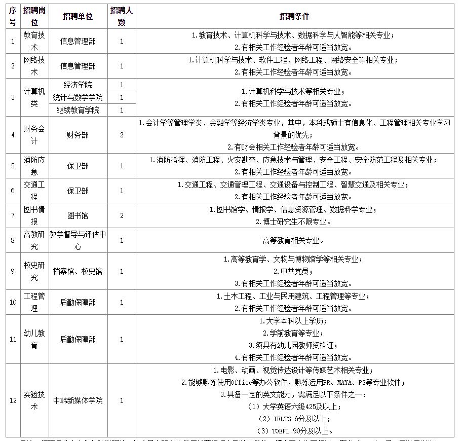 因工作需要,經(jīng)學(xué)校研究決定,面向社會公開招聘16名非教師專業(yè)技術(shù)人員?,F(xiàn)將有關(guān)事項公告如下: