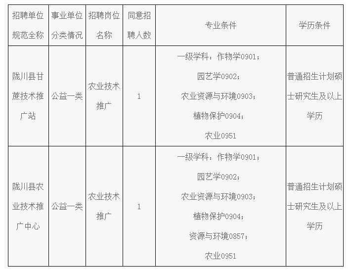 隴川縣農(nóng)業(yè)農(nóng)村局下屬事業(yè)單位2024年度引進研究生公告