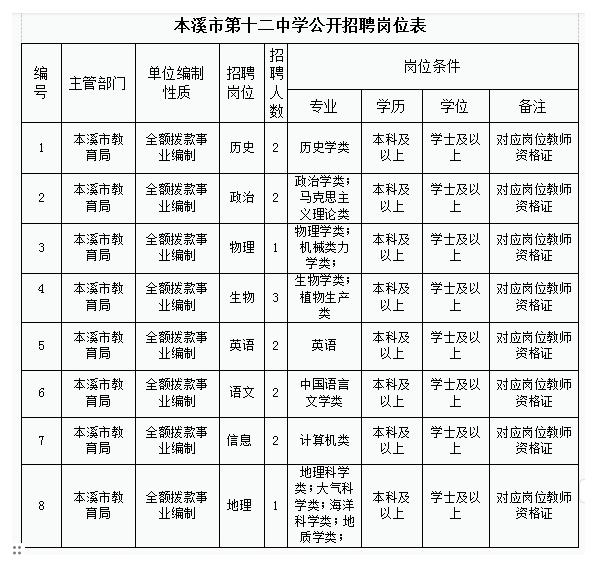 2024年本溪市第十二中學(xué)“名校優(yōu)生”校園招聘教師公告
