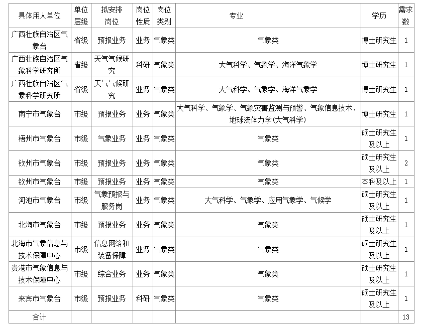 廣西氣象部門2024年度事業(yè)單位招聘計劃明細(xì)表