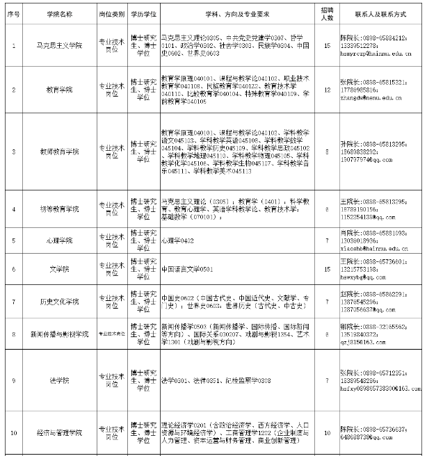 聯(lián)系電話:0898-65889721(人才科)