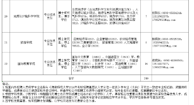 2024年面向全球考核招聘高層次人才240人,招聘崗位詳見《海南師范大學(xué)2024年考核招聘高層次人才崗位一覽表》(附件1)。