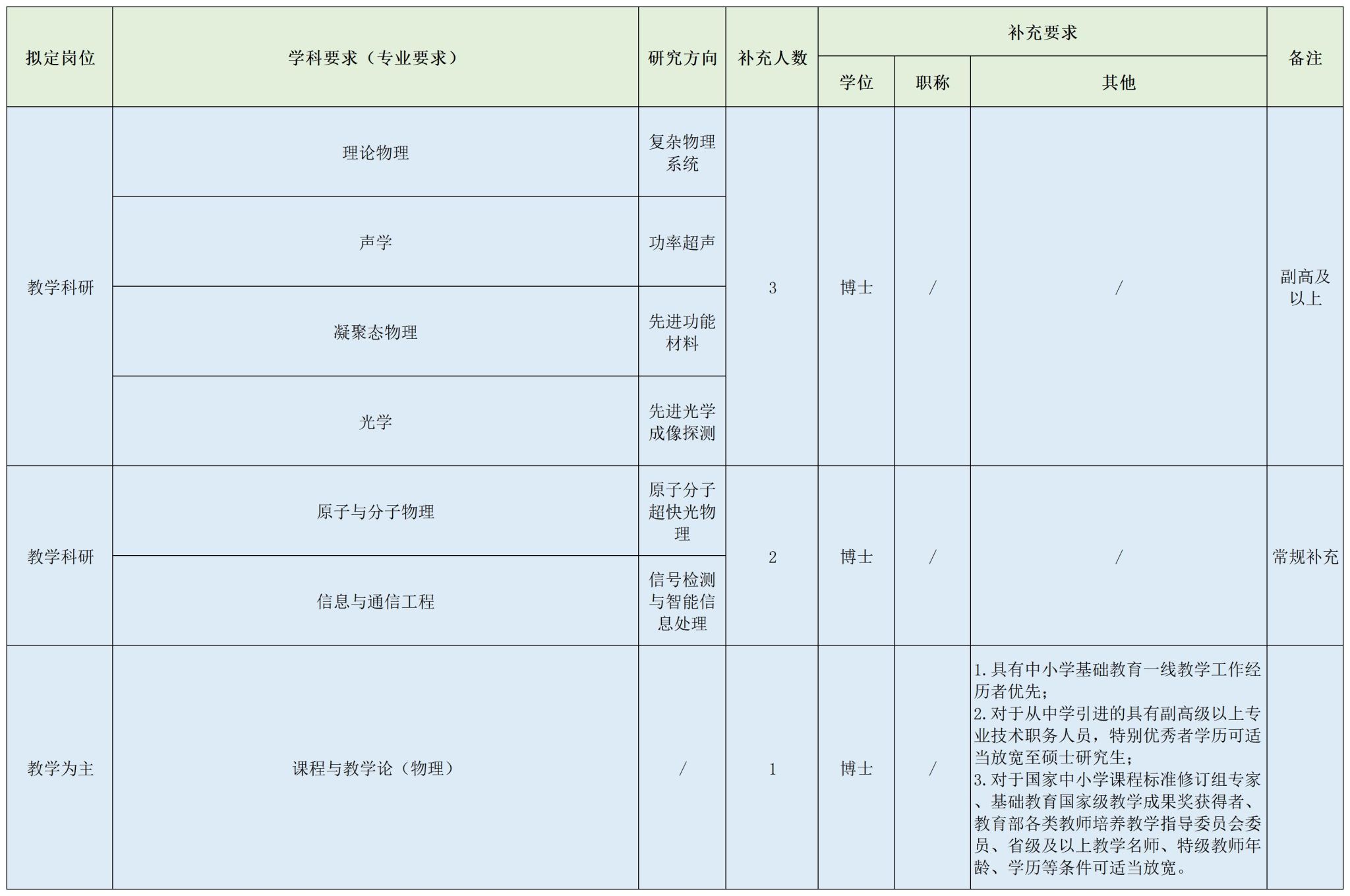?。?)學(xué)科課程與教學(xué)論教師原則上具有研究生學(xué)歷、博士學(xué)位。