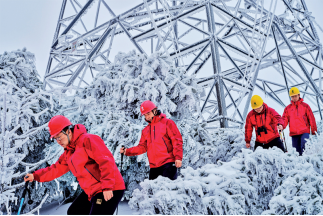 2024年2月,浙江迎來新一輪低溫雨雪天氣,位于紹興山區(qū)的500千伏鳳巖、鳳蒼等多條供電線路出現(xiàn)不同程度的覆冰情況。為保障當(dāng)?shù)毓╇娋€路的安全穩(wěn)定運行,截至2月26日,國網(wǎng)紹興供電公司共出動紅船共產(chǎn)黨員服務(wù)隊18支,順利完成了9條覆冰線路直流融冰工作和配電網(wǎng)搶修工作。圖為2月26日,紅船共產(chǎn)黨員服務(wù)隊隊員對500千伏鳳巖5832線71號塔-72號塔覆冰嚴重區(qū)段開展特巡工作。新華社記者 金良快/攝