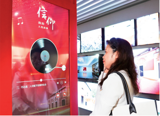 2023年9月11日,“永恒的誓言——中國共產(chǎn)黨入黨宣誓文物史料專題展”開幕式在中共一大紀念館舉行。展覽展出文物史料270件(套),引領(lǐng)觀眾在入黨誓詞的發(fā)展演變中領(lǐng)會中國共產(chǎn)黨人的初心和使命,從踐行誓言的典范中感悟錚錚誓言中的思想內(nèi)涵與精神力量。圖為當(dāng)日,參觀者通過多媒體裝置聆聽普通黨員講述自己的入黨故事。新華社記者 劉穎/攝
