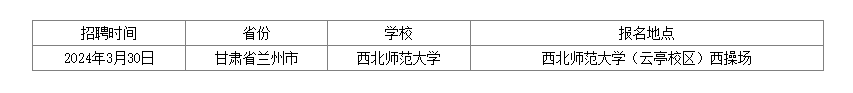 2.面試地點(diǎn):西北師范大學(xué)(云亭校區(qū))西操場,面試時間、地點(diǎn)以現(xiàn)場通知為準(zhǔn)