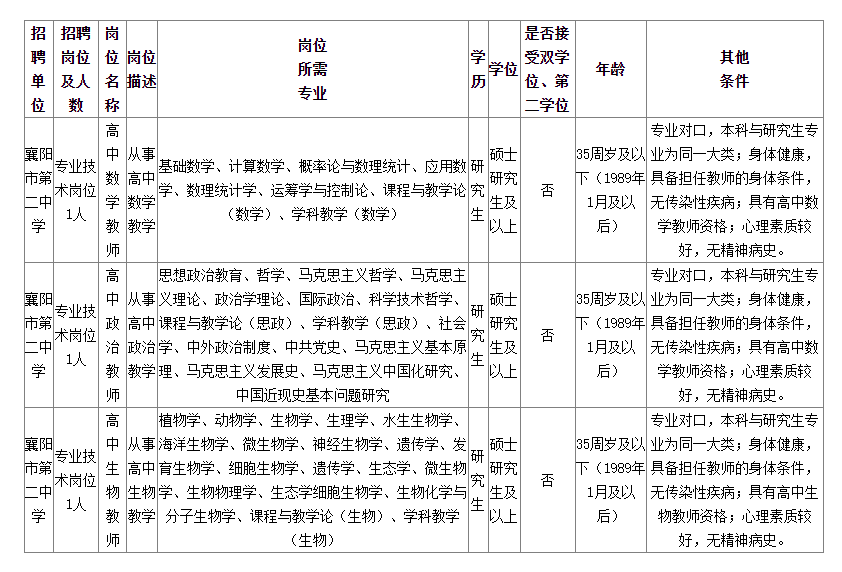 襄陽市第二中學(xué)2024年度公開招聘緊缺高層次人才公告