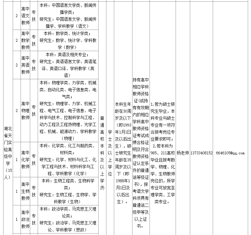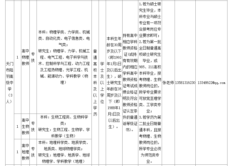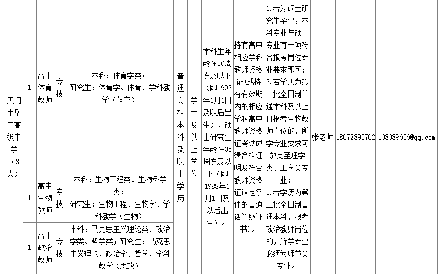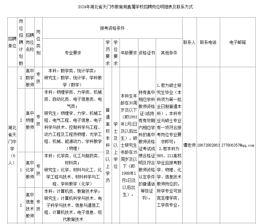 1. 2024年湖北省天門市教育局直屬學校招聘崗位明細表及聯(lián)系方式