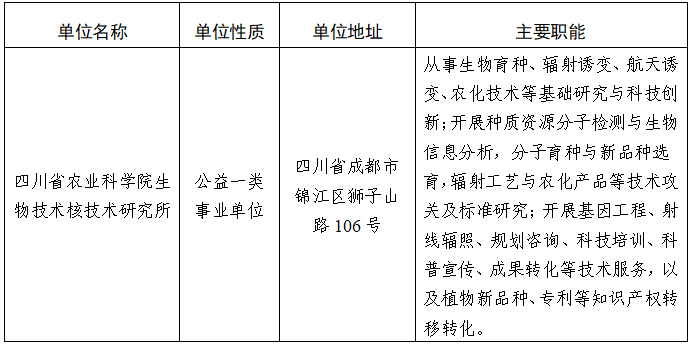 四川省農業(yè)科學院生物技術核技術研究所2024年上半年考核招聘工作人員公告