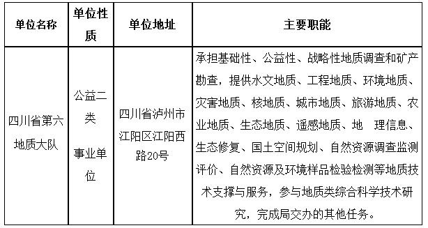咨詢電話:四川省第六地質(zhì)大隊人事科0830-3120068