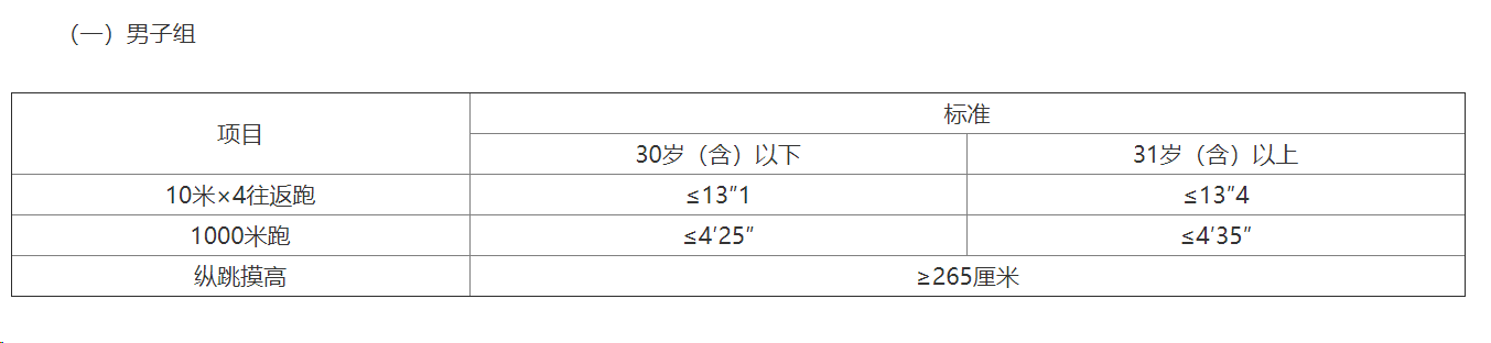 報考緊缺職位的人員,體能測評項目三項中有兩項達(dá)標(biāo)的,視為合格。報考其他職位的人員,體能測評三項全部達(dá)標(biāo)方為合格。