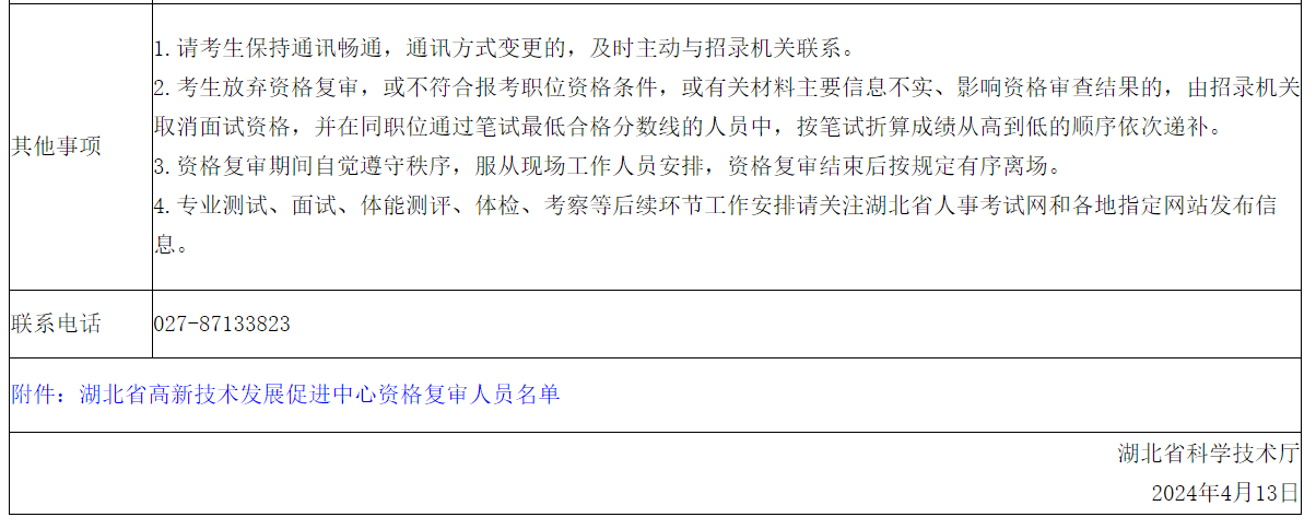 2024年湖北省科學(xué)技術(shù)廳公務(wù)員考試資格復(fù)審公告