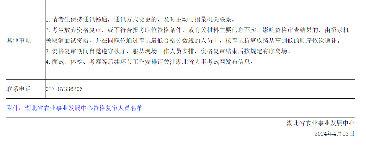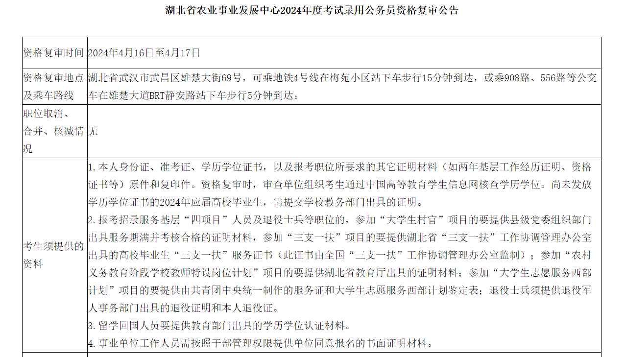 2024年湖北省農(nóng)業(yè)事業(yè)發(fā)展中心公務(wù)員考試資格復(fù)審公告