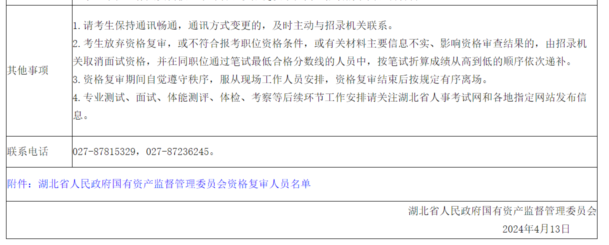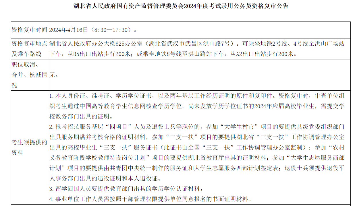 2024年湖北省人民政府國(guó)有資產(chǎn)監(jiān)督管理委員會(huì)公務(wù)員考試資格復(fù)審公告