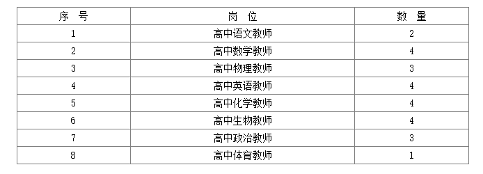襄陽市第四中學(xué)擬公開招聘緊缺高層次專業(yè)人才25名。具體崗位及數(shù)量如下: