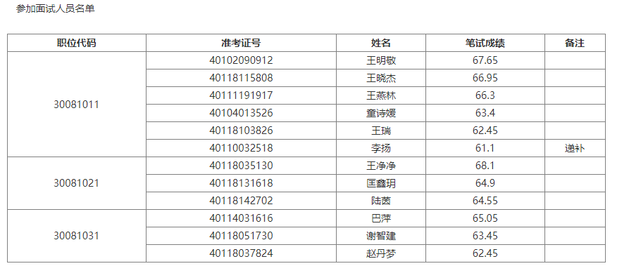 經(jīng)面試資格確認(rèn)(并按規(guī)定遞補(bǔ)后),共確定12人進(jìn)入面試,參加面試人員名單附后(見(jiàn)附件1)。