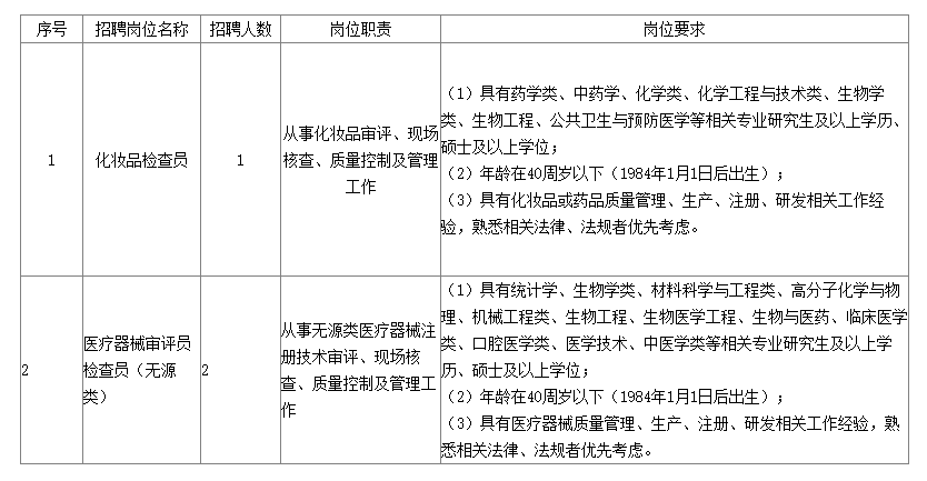 為進(jìn)一步深化干部人事制度改革,拓寬選人用人視野,根據(jù)《上海市事業(yè)單位公開招聘人員辦法》(滬人社規(guī)〔2019〕15號(hào)),按照公開、平等、競爭、擇優(yōu)的原則,現(xiàn)面向社會(huì)公開招聘化妝品檢查員和醫(yī)療器械審評(píng)員檢查員(無源類)。