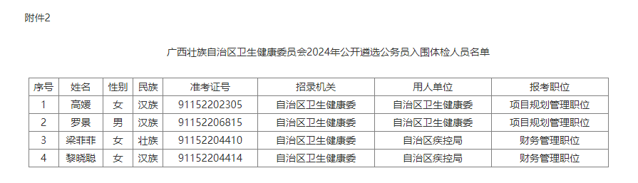 2廣西壯族自治區(qū)衛(wèi)生健康委員會2024年公開遴選公務(wù)員入圍體檢人員名單