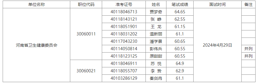 河南省衛(wèi)生健康委員會(huì)2024年統(tǒng)一考試錄用公務(wù)員面試公告