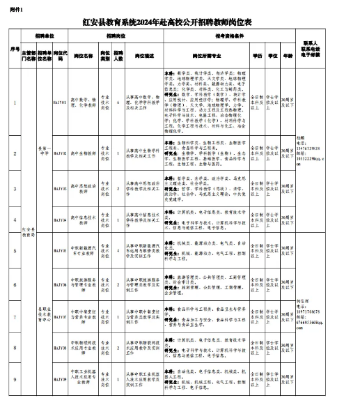 附件:1.紅安縣教育系統(tǒng)2024年赴高校公開招聘教師崗位表