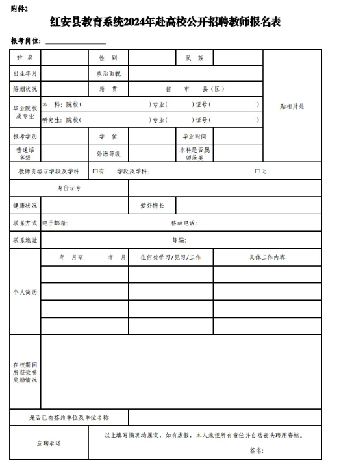 2.紅安縣教育系統(tǒng)2024年赴高校公開招聘教師報名表
