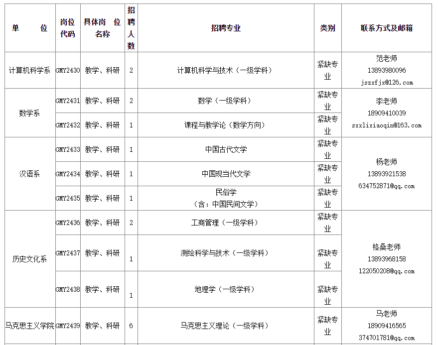 注:未列入計劃,符合學(xué)校學(xué)科專業(yè)建設(shè)需要的其他專業(yè)也可同時招聘。