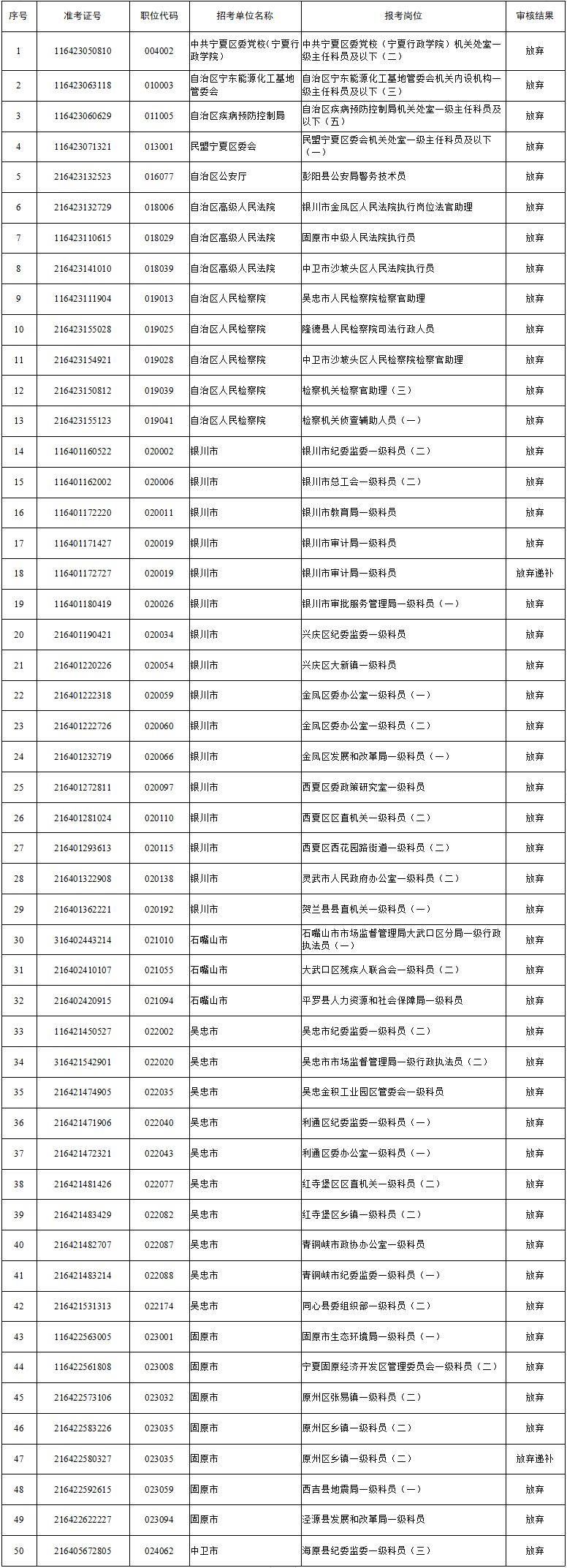 寧夏回族自治區(qū)2024年考試錄用公務(wù)員資格復(fù)審結(jié)果公告
