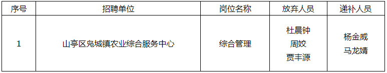 在2024年度山亭區(qū)事業(yè)單位初級綜合類崗位公開招聘面試資格審查工作中,共有3名考生放棄資格審查,按照《2024年度山亭區(qū)事業(yè)單位初級綜合類崗位公開招聘工作人員簡章》要求,從達到筆試合格分數(shù)線的應聘人員中按筆試成績由高分到低分依次遞補2名考生,均已通過資格審查。具體情況見下表:
