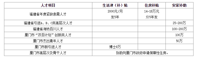 學(xué)校根據(jù)福建省、廈門(mén)市人才政策的有關(guān)規(guī)定,協(xié)助符合現(xiàn)行政策條件的人員積極申報(bào)相關(guān)人才項(xiàng)目及補(bǔ)貼。