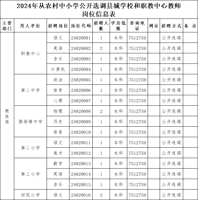 圍場滿族蒙古族自治縣人力資源和社會(huì)保障局圍場滿族蒙古族自治縣教育和體育局2024年從農(nóng)村中小學(xué)公開選調(diào)縣城學(xué)校和職教中心教師工作公告