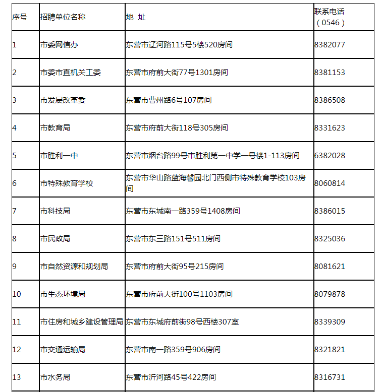 附件:市直招聘單位地址及聯(lián)系電話