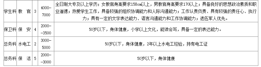 4、繳納五險(xiǎn)一金,學(xué)校提供吃、住。