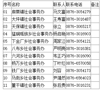 麻栗坡縣各鄉(xiāng)鎮(zhèn)社會(huì)事務(wù)辦聯(lián)系人及聯(lián)系方式