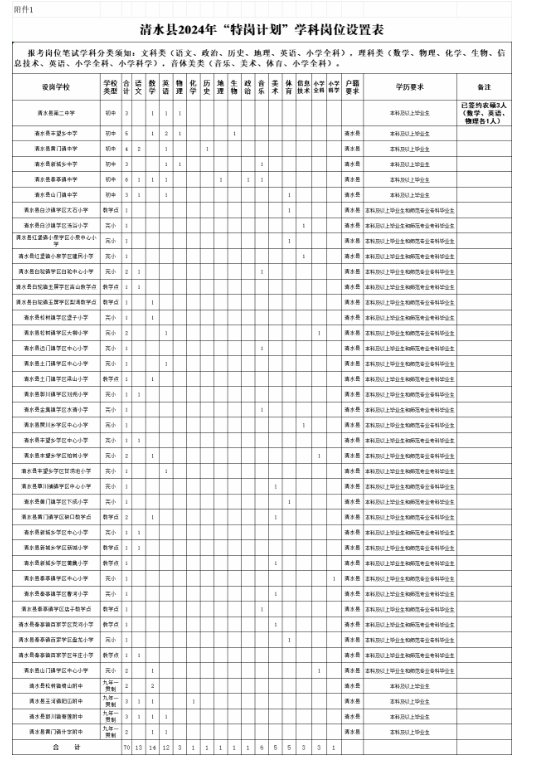 附件:1.清水縣2024年“特崗計(jì)劃”學(xué)科崗位設(shè)置表