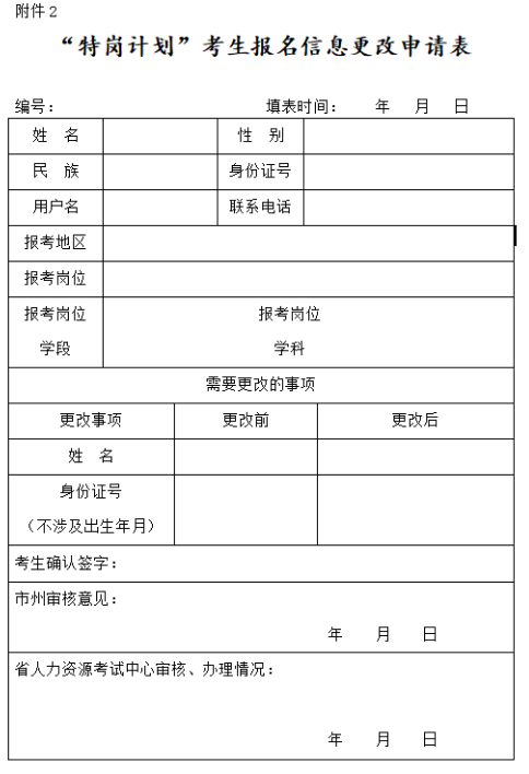 附件:2.“特崗計(jì)劃”考生報名信息更改申請表