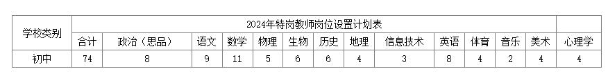 2024年計(jì)劃招聘74名初中學(xué)段特崗教師,具體崗位設(shè)置如下: