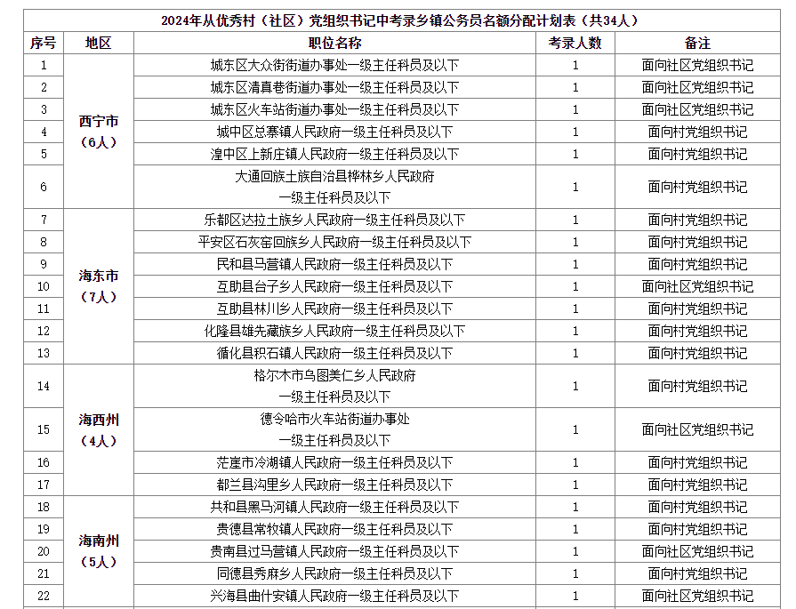 青海省2024年從優(yōu)秀村(社區(qū))黨組織書(shū)記中考錄鄉(xiāng)鎮(zhèn)公務(wù)員公告