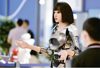 當(dāng)前數(shù)字化浪潮席卷全球,正在不斷推動新質(zhì)生產(chǎn)力的形成與發(fā)展。2024年5月24日,以“釋放數(shù)據(jù)要素價值,發(fā)展新質(zhì)生產(chǎn)力”為主題的第七屆數(shù)字中國建設(shè)峰會在福建福州開幕。圖為當(dāng)日峰會現(xiàn)場體驗區(qū)的超仿生人形機器人“小柒”在向觀眾致意。新華社記者 魏培全/攝