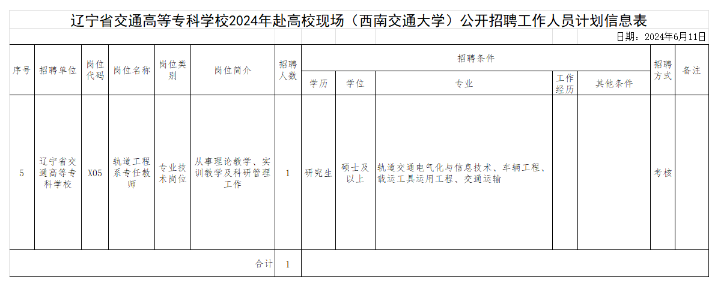 遼寧省交通高等??茖W(xué)校2024年赴高校現(xiàn)場(chǎng)(西南交通大學(xué))公開(kāi)招聘工作人員公告