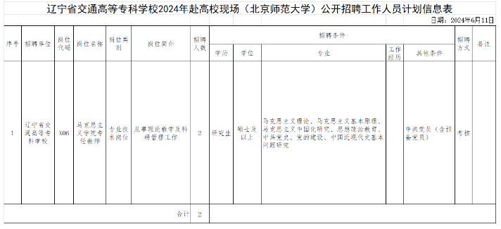 遼寧省交通高等專科學(xué)校2024年赴高?,F(xiàn)場(chǎng)(北京師范大學(xué))公開招聘工作人員公告