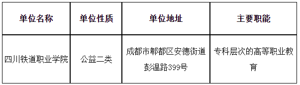 根據(jù)《事業(yè)單位人事管理條例》《事業(yè)單位公開招聘人員暫行規(guī)定》和《四川省省屬事業(yè)單位公開招聘工作人員實施細則(試行)》等有關(guān)規(guī)定,經(jīng)四川省教育廳備案,我單位擬面向社會公開招聘9名工作人員?,F(xiàn)將公開招聘有關(guān)事項公告如下(本公告同時在四川省人力資源和社會保障廳(以下簡稱省人社廳)官網(wǎng)[http://rst.sc.gov.cn,下同]“人事考試”專欄、省教育廳官網(wǎng)[http://edu.sc.gov.cn,下同]和四川鐵道職業(yè)學院網(wǎng)站[https://www.scrc.edu.cn/,下同]上發(fā)布)。
