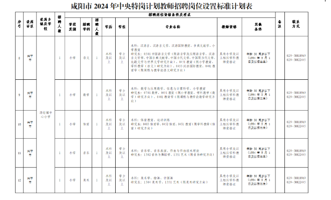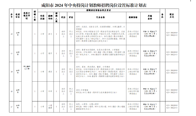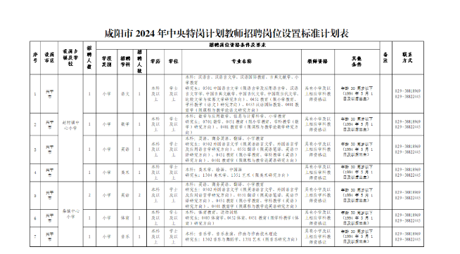 ?。ㄒ唬┕夹枨?。6月13日前,向咸陽市特崗辦報送2024年招聘計劃、特崗教師崗位設(shè)置標準及公開招聘辦法等。6月18日起,在陜西省教育廳門戶網(wǎng)站(網(wǎng)址:http://jyt.shaanxi.gov.cn/)等平臺發(fā)布招聘信息。