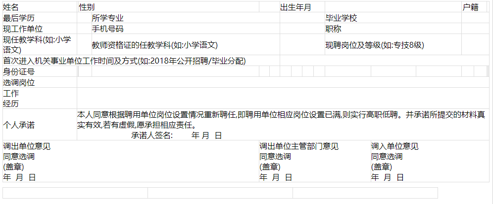 2.2024年德清縣公開選調(diào)縣外在編教師報名表