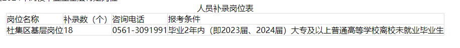附件:杜集區(qū)2024年高校畢業(yè)生基層特定崗位人員補錄崗位表