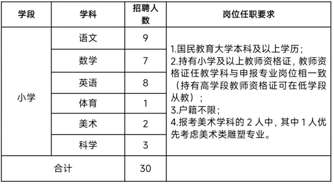 為進一步加強師資隊伍建設(shè),優(yōu)化隊伍結(jié)構(gòu),促進教育均衡、高質(zhì)量發(fā)展,擬公開招聘教師30名?,F(xiàn)將有關(guān)事宜公告如下: