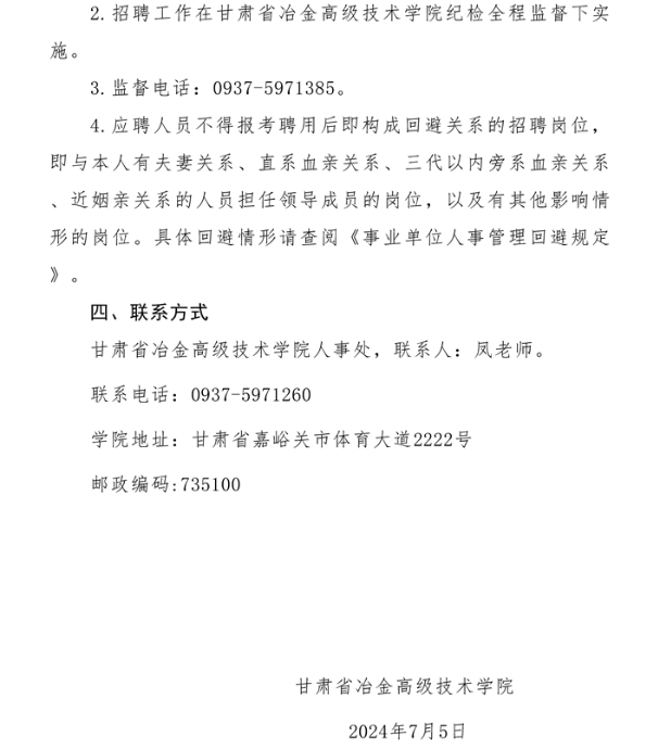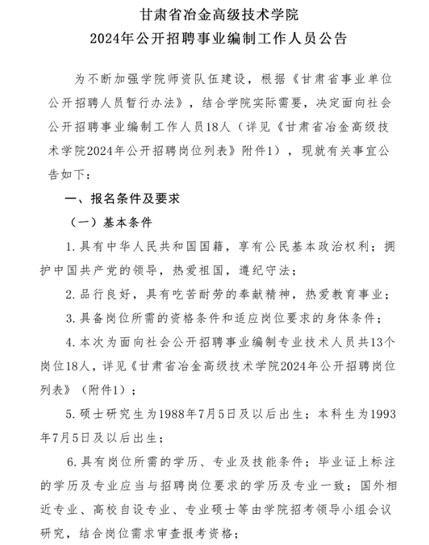 2024年甘肅省冶金高級技術(shù)學(xué)院公開招聘事業(yè)編制工作人員公告