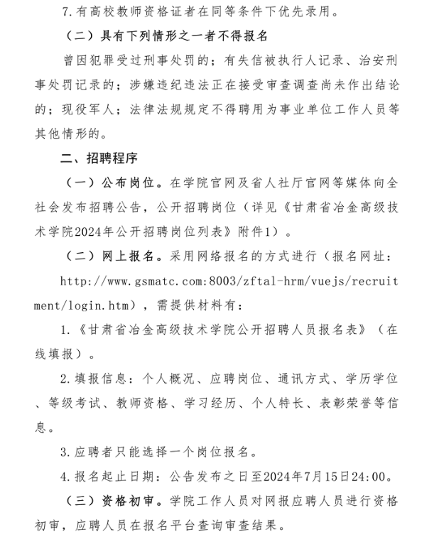 報名網(wǎng)址:http://www.gsmatc.com:8003/zftal-hrm/vuejs/recruitment/login.htm