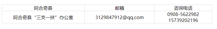 阿合奇縣“三支一扶”辦公室咨詢電話:0908-5622982